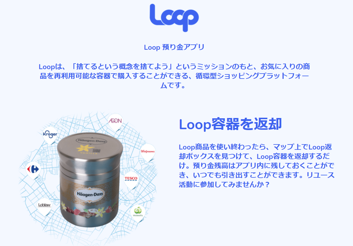 エコ ECO Loop商品 再利用可能容器を利用した「ゼロ・ウェイスト(ごみを出さない)」 Loop商品 再利用可能容器を利用した「ゼロ・ウェイスト(ごみを出さない)」というビジネス。素晴らしい活動であると思います。単独の企業や商品、地域などでも出来そうな気がする。とてもECOな方法であるので、どこかで試してみたいですね。◆イオン... エコ ECO